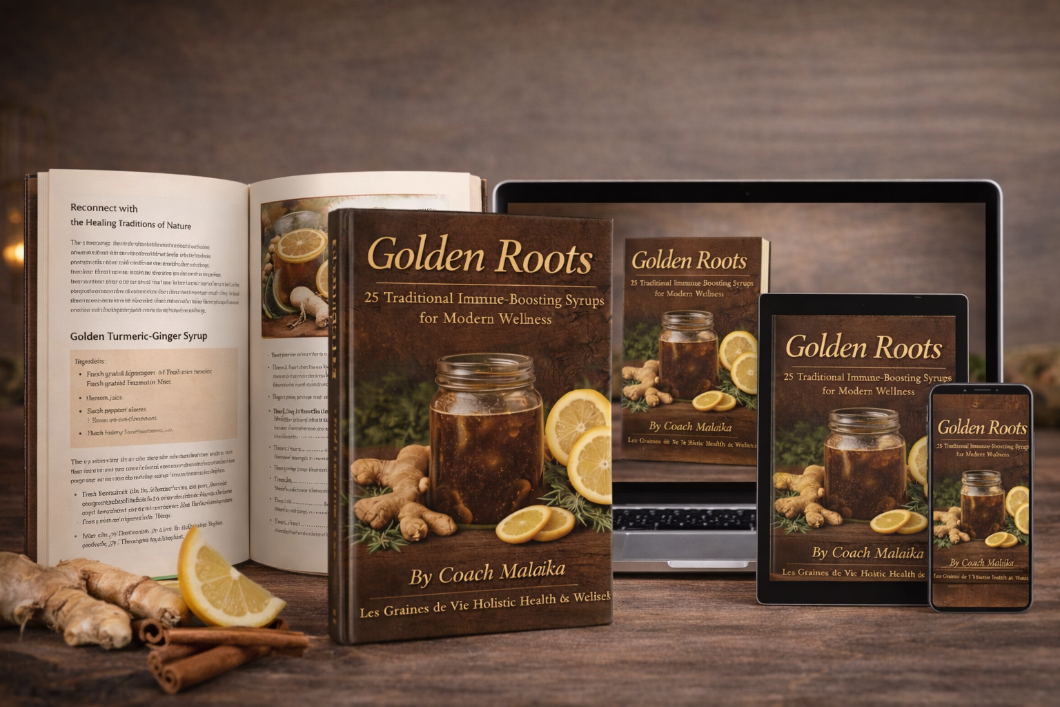 Golden Roots is a beautifully designed wellness eBook featuring 25 traditional, alcohol-free immune-supporting syrup recipes you can easily make at home using familiar kitchen ingredients.